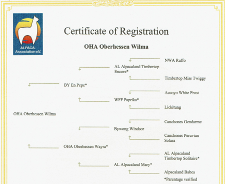 gelistet im Elite- Stutbuch der Alpaca- Association e.V.!